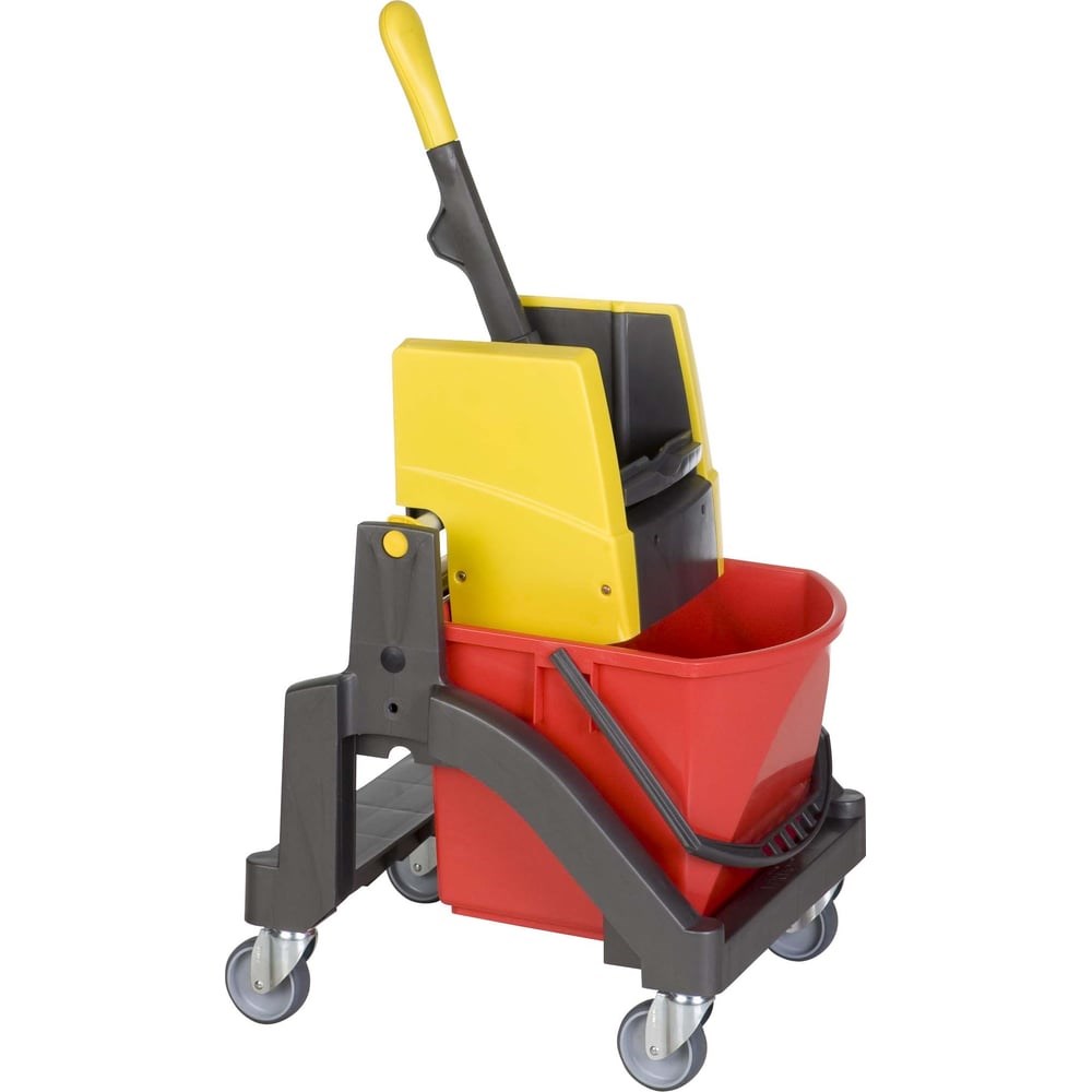 Тележка для влажной уборки Vermop Aquva 1х17 л V 0348 имеет вертикальный отжим и подходит для всех типов мопов. Она изготовлена из прочнейшего антивандального пластика, благодаря чему устойчива к механическим повреждениям. Компактные габариты и небольшой вес тележки облегчают ее перемещение. Конструкция оборудована ведром емкостью 17 литров.