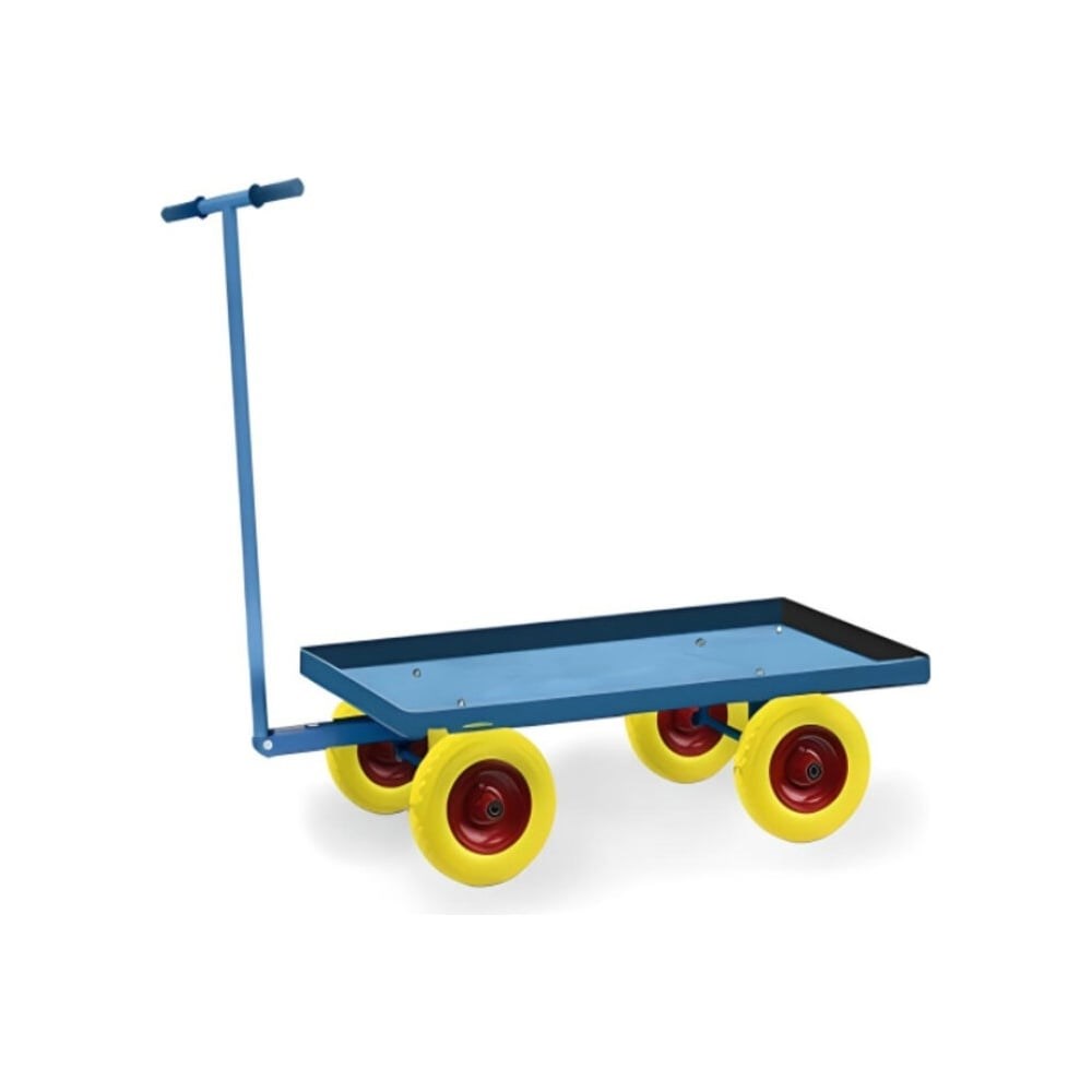 МосТележка Тележка с ручным управлением поворотной осью 700x1200 ТРУ-12070 легка и проста в применении. Идеально подходит для перевозки груза в коробках, ящиках, евробоксов на складах, в торговых залах, на производстве. Предназначена для регулярного, интенсивного использования.Опорная рама: СтальНастил: стальной лист толщиной 1,5мм (под заказ 2 мм)Ограждающий бортик: 50 ммПредусмотрена возможность установки платформы ограждающим бортиком вниз для перевозки крупногабаритного грузаПередняя ось поворотная, задняя ось фиксированнаяВысота ручки: 770 ммУстойчивое к царапинам порошково-полимерное покрытие синего цвета RAL 5012Грузоподъемность: до 450 кг