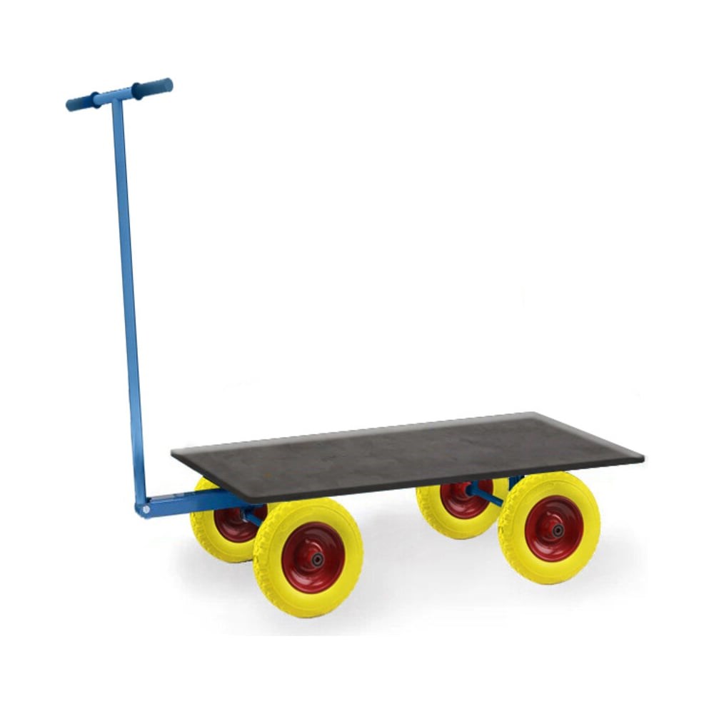 Тележка с ручным управлением поворотной осью 700x1200 ТРУФ-12070 легка и проста в применении. Идеально подходит для перевозки груза в коробках, ящиках, евробоксов на складах, в торговых залах, на производстве. Предназначена для регулярного, интенсивного использования.Опорная рама: СтальНастил: ламинированная фанера 12мм и 18ммПередняя ось поворотная, задняя ось фиксированнаяВысота от пола до платформы: 330ммВысота ручки: 770 ммУстойчивое к царапинам порошково-полимерное покрытие синего цвета RAL 5012Грузоподъемность: до 450 кг