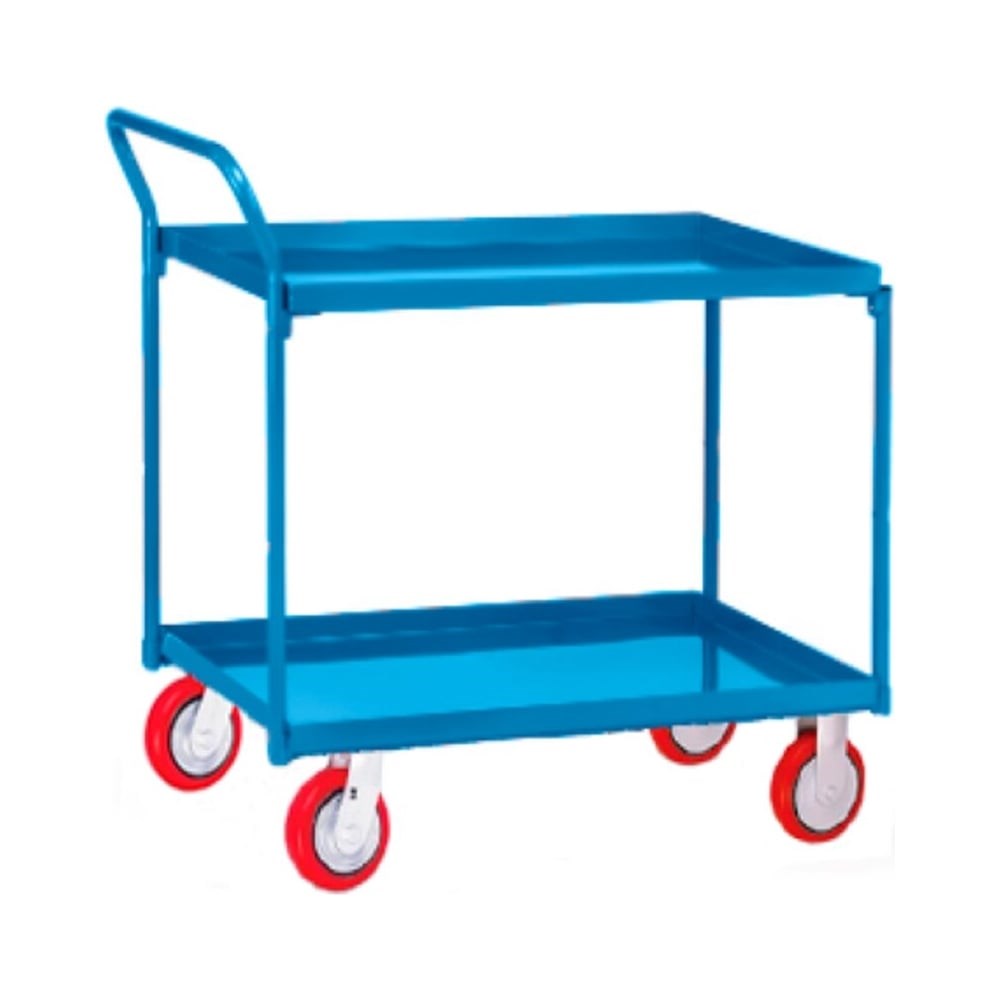 Цельнометаллическая 2-х ярусная тележка МосТележка 820x1220 мм ТЯМ2-12282 легка и проста в применении. Идеально подходит для перевозки евробоксов, ящиков, коробов или лотков на складах, в торговых залах, на производстве. Предназначена для регулярного, интенсивного использования. Имеет устойчивое к царапинам порошково-полимерное покрытие синего цвета RAL 5012. Опорная рама: стальная Настил: стальной лист Ручка: стальная 1 шт. Грузоподъемность: до 350 кг Колеса: 4 колеса х 160 мм в диаметре фиксированные и поворотные Высота полок: 230, 820 мм Высота бортика: 30 мм Нагрузка на каждую полку - 100 кг