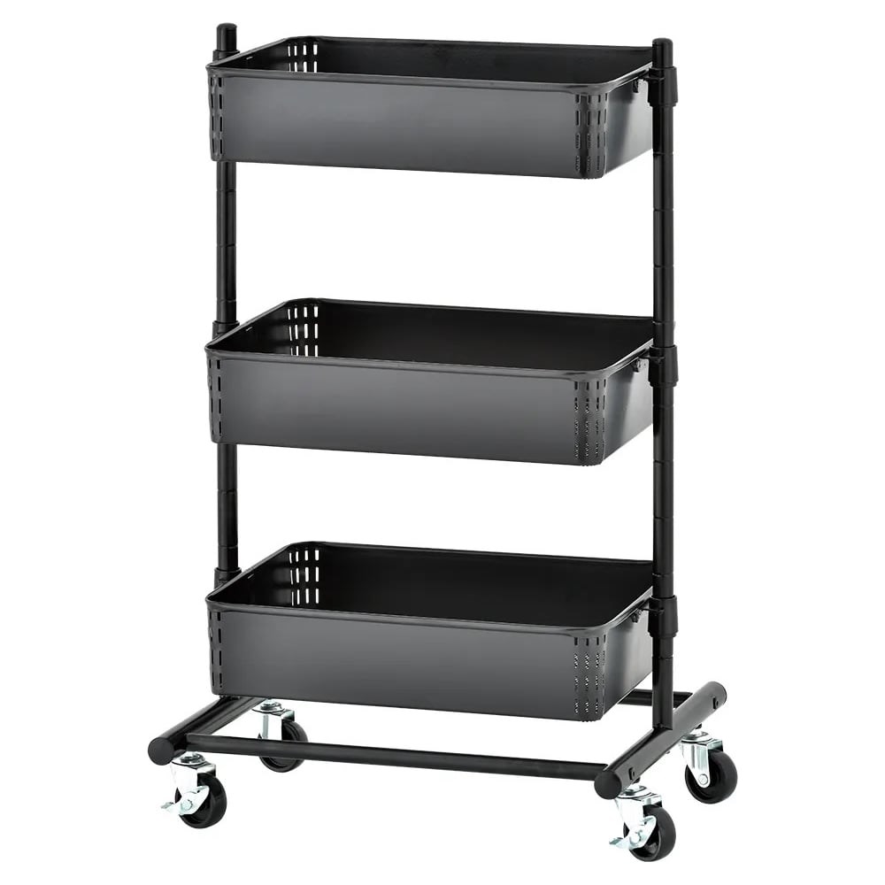 Тележка MY SPACE 3 корзинки, черный TB3P позволяет оптимизировать пространство в помещении. Выполнена из металла и пластика, за счет чего отличается долгим сроком службы. Наличие трех объемных полок помогает разместить много вещей. Оснащена колесиками, благодаря чему имеет высокую мобильность.