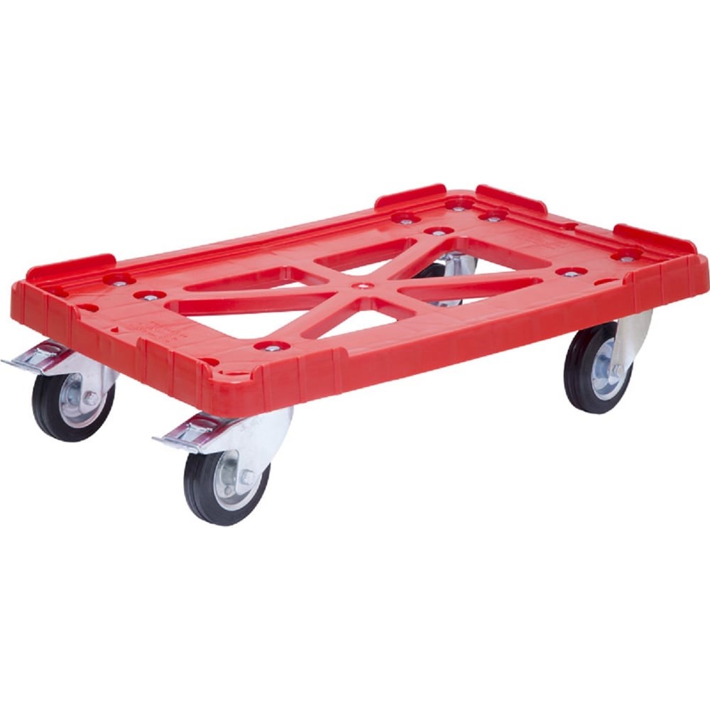 Тележка Тара.ру п/э 600х400, чёрные резиновые колеса (два с тормозом) 15651 используется для внутрицехового и внутрискладского перемещения загруженных или пустых пластиковых ящиков. Модель выполнена из пластика.