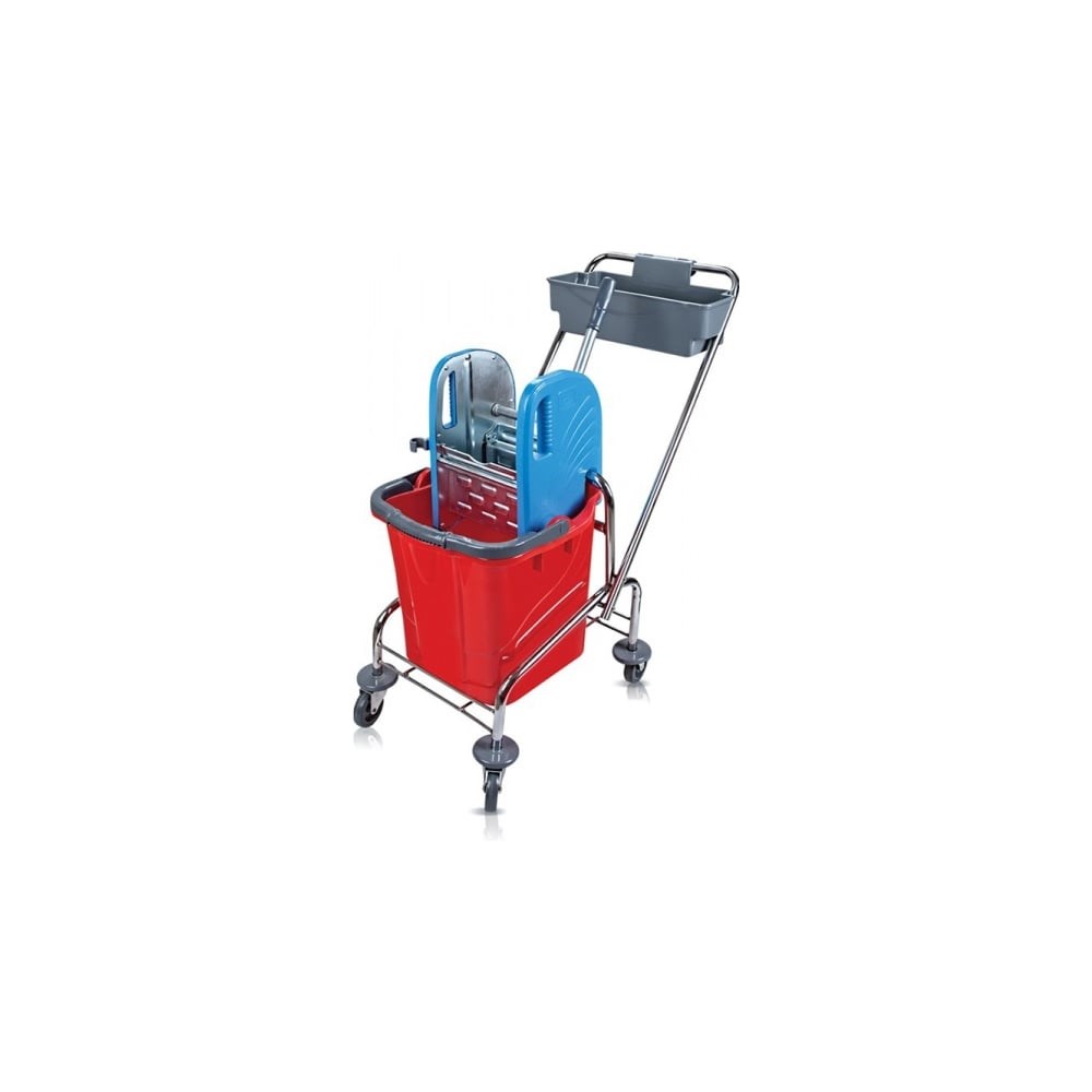 Тележка Uctem-Plas TK721 - клининговое оборудование для уборки в квартире, небольшом ресторанчике, офисе, магазине. Каркас изготовлен из хромированного металла, ведро - из пластика, отжим - из металла. Рукоятка способствует удобному управлению тележкой. Колесики облегчают перемещение по территории.