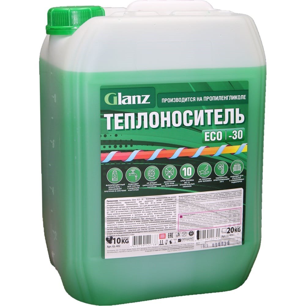 Производится на пропиленгликоле Применение: теплоноситель ECO -30 GLANZ – безопасный теплоноситель на основе пропиленгликоля, предназначен для различных систем отопления и кондиционирования. Теплоноситель ECO -30 GLANZ на основе пропиленгликоля предназначен как для одноконтурных, так и для двухконтурных систем отопления в качестве рабочей жидкости, обеспечивающий работу в диапазоне температур от -30°C до +106°С (в соответствии с инструкциями по правилам эксплуатации оборудования). Перед заливкой теплоносителя ECO -30 GLANZ в новую систему отопления необходимо произвести гидроиспытания и проверить ее работу. Испытания проводить при положительной температуре на дистиллированной воде, а при отрицательной – на теплоносителе для систем отопления. При обнаружении не герметичности слить жидкость, устранить протечки и вновь испытать. При положительном испытании продолжить заливку теплоносителя, если заливали теплоноситель, если заливали воду, то слить воду и залить в систему теплоноситель.