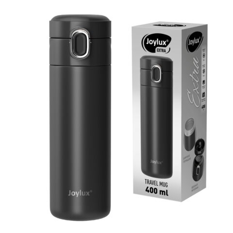 Термокружка 400 мл JOYLUX (ДЖОЙЛЮКС) EXTRA STYLE, нержавеющая сталь SUS304, черный матовый, 700280