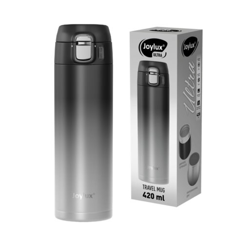 Термокружка 420 мл JOYLUX (ДЖОЙЛЮКС ULTRA GRADIENT, нержавеющая сталь SUS304, черный/серый, 700274