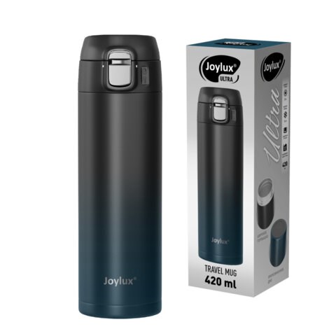 Термокружка 420 мл JOYLUX (ДЖОЙЛЮКС) ULTRA GRADIENT, нержавеющая сталь SUS304, черный/синий, 700275