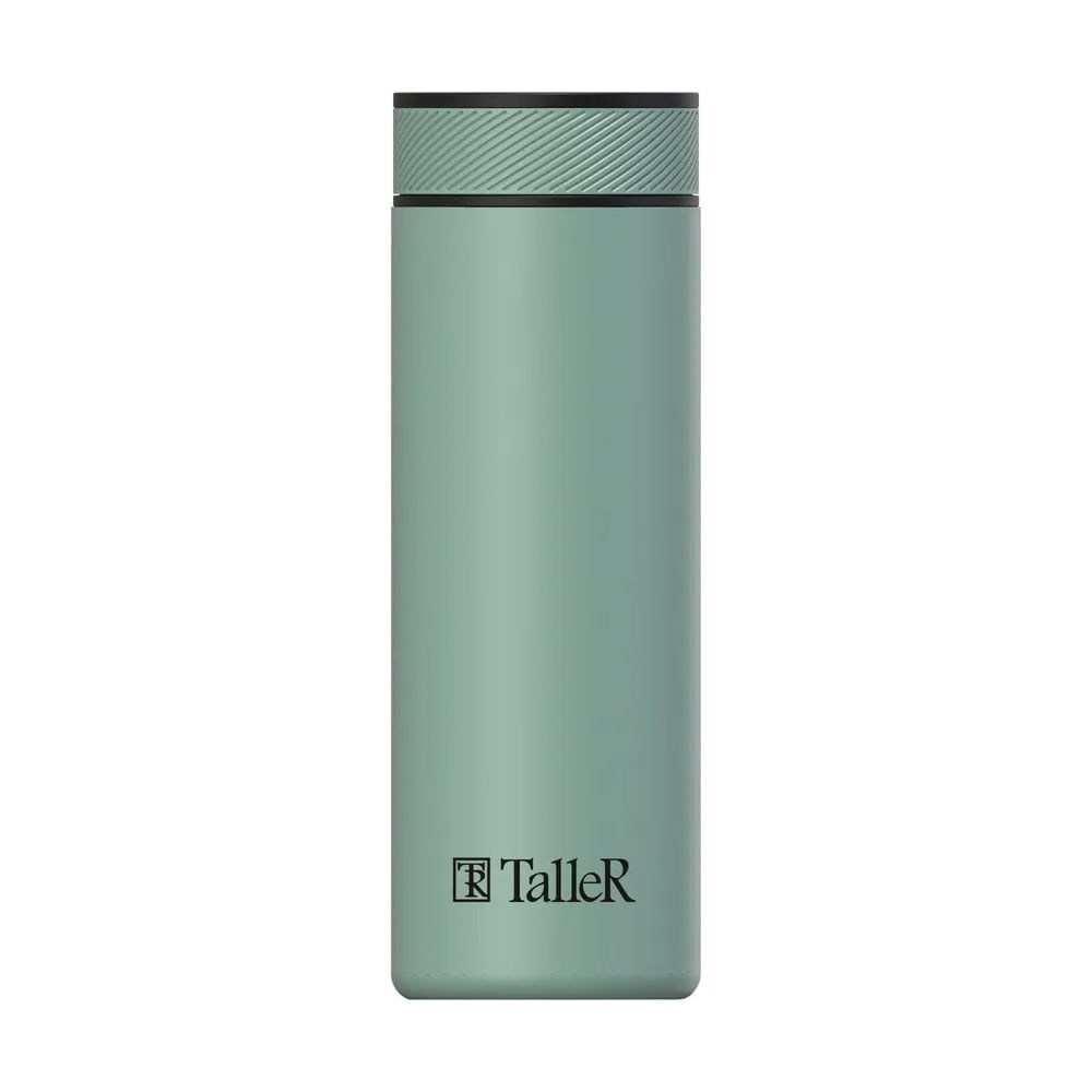 Колба термоса изготовлена из высококачественной нержавеющей стали марки 18/10 (AISI 304). Покрытие - светло-зеленое, матовое.  Герметичная крышка-кнопка минимизирует потерю тепла, плотное силиконовое кольцо на внутренней стороне крышки не позволяет пролиться напитку. ермокружку удобно открывать и закрывать одним нажатием. Оригинальная конструкция крышки-кнопки позволяет наливать напиток из любого места по диаметру крышки. Откручивающаяся кнопка облегчает уход за изделием. Внешняя стенка остается холодной, даже если термос наполнен кипятком. Диаметр горлышка - 7 см. Сохранение температуры: 6 часов - 66C, 12 часов - 53C.Для лучшего сохранения температуры прогрейте термос кипятком. Рекомендуется ручная мойка, чтобы сохранить превосходный внешний вид изделия.