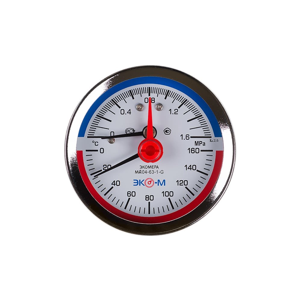Термоманометр Экомера МД04 - комбинированный прибор, предназначенный для измерения температуры и избыточного давления неагрессивных к медным сплавам сред в системах теплоснабжения и водоснабжения.