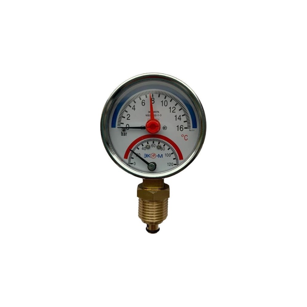 Термоманометр ЭКО-М Экомера МД0 4-63 мм, 0..16 бар, 0..120С, G1\4 с переходником на G1\2 МД04-63-G-16-120-РИ