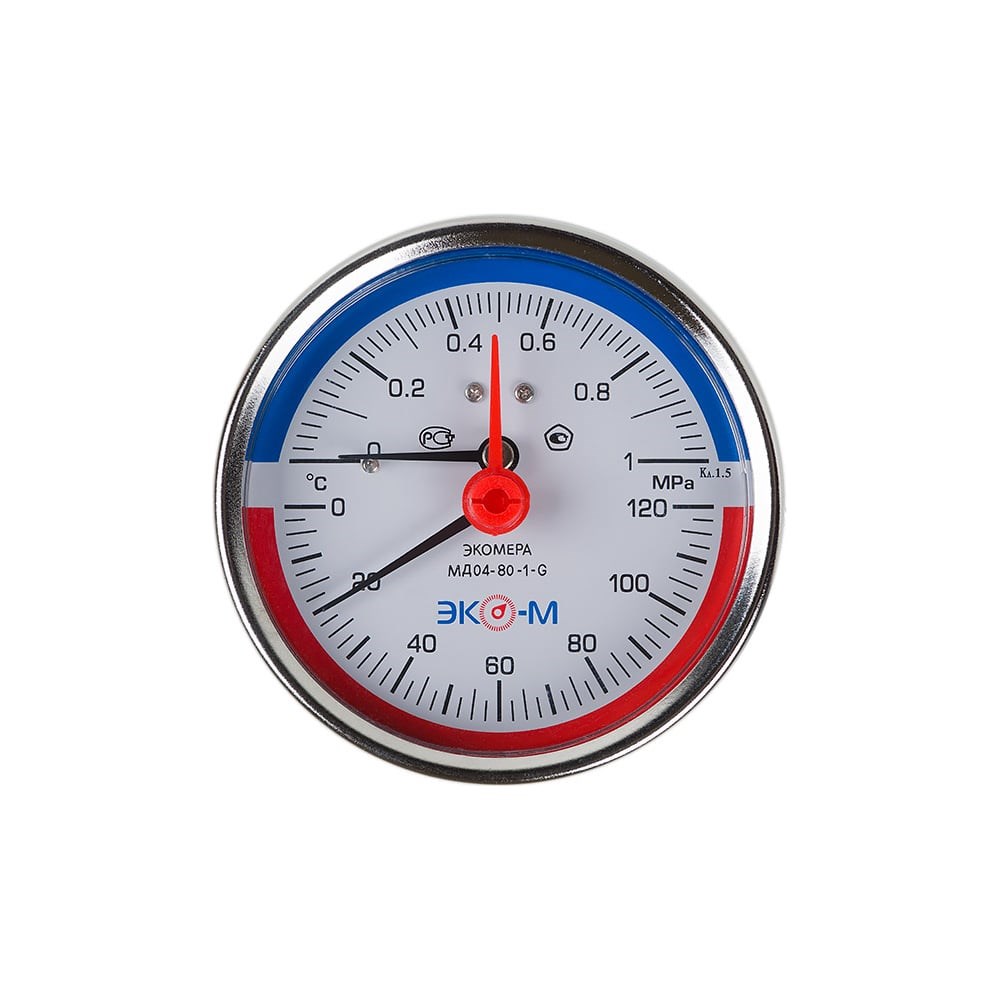 Термоманометр Экомера МД04 - комбинированный прибор, предназначенный для измерения температуры и избыточного давления неагрессивных к медным сплавам сред в системах теплоснабжения и водоснабжения.