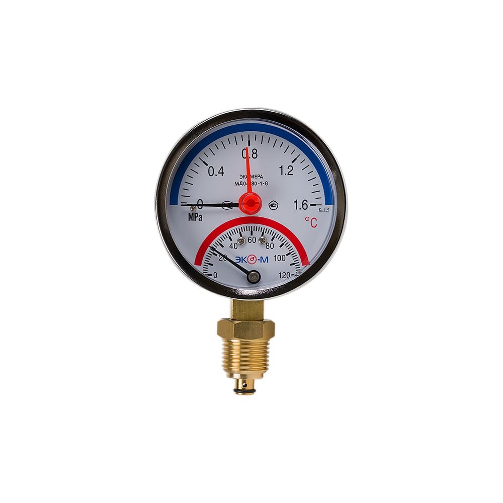 Термоманометр комера МД04 - комбинированный прибор, предназначенный для измерения температуры и избыточного давления неагрессивных к медным сплавам сред в системах теплоснабжения и водоснабжения.Все приборы поверены и внесены в АРШИН.