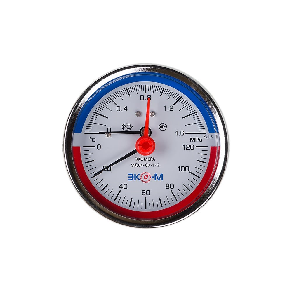 Термоманометр Экомера МД04 - комбинированный прибор, предназначенный для измерения температуры и избыточного давления неагрессивных к медным сплавам сред в системах теплоснабжения и водоснабжения.