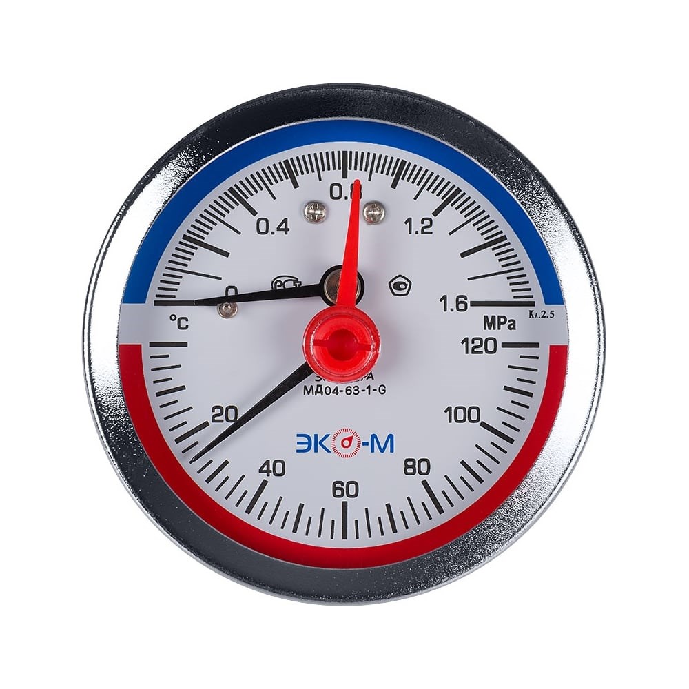 Термоманометр Экомера МД04 - комбинированный прибор, предназначенный для измерения температуры и избыточного давления неагрессивных к медным сплавам сред в системах теплоснабжения и водоснабжения.