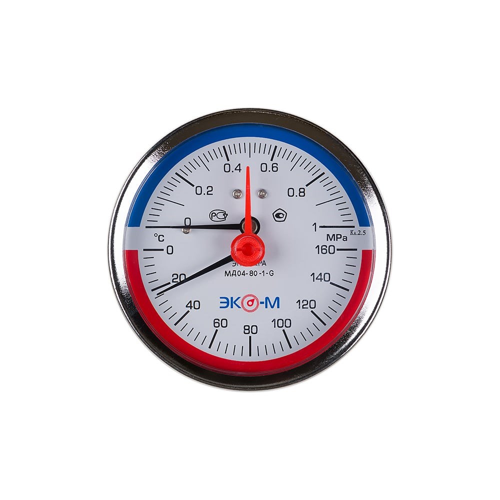 Термоманометр Экомера МД04 - комбинированный прибор, предназначенный для измерения температуры и избыточного давления неагрессивных к медным сплавам сред в системах теплоснабжения и водоснабжения.