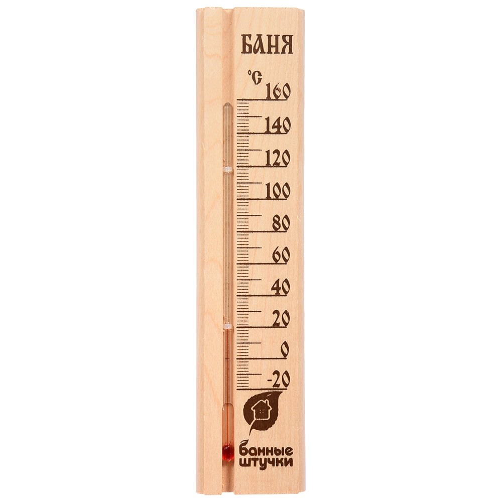 Термометр для бани и сауны Банные штучки, Баня, 27х6,5х1,5см 18037 предназначен для использования в бане и сауне. Контролировать температуру и влажность воздуха в бане и сауне позволят специальные термометры и гигрометры. Русский человек любит ходить в баню, а особенно - париться. Однако полезно иметь измеритель, который позволяет следить за температурой и влажностью воздуха в парилке.