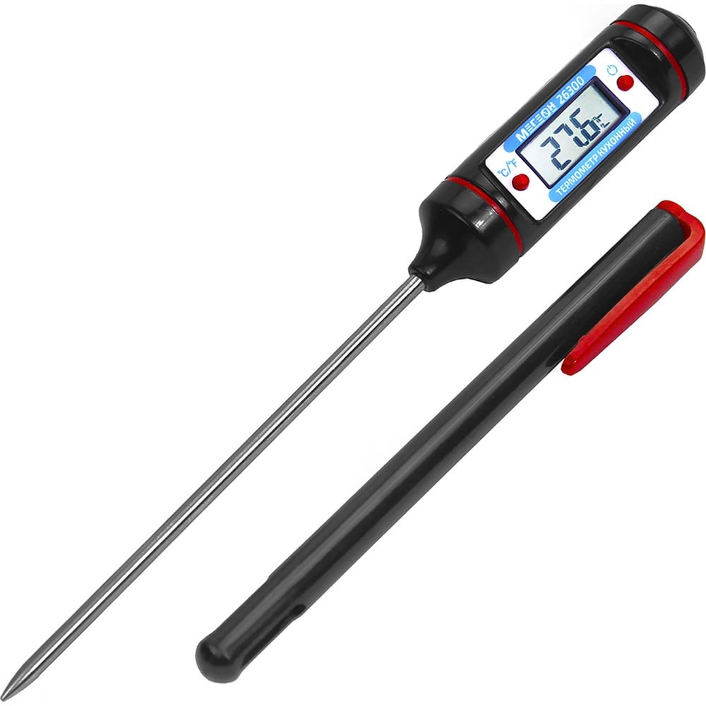 Представляем Вашему вниманию новинку от компании МЕГЕОН — портативный термометр МЕГЕОН 26300. Данная разработка позволяет контактным методом определять температуру с высокой точностью и минимальной погрешностью. Одной из отличительных особенностей термометра является функция сохранения последнего полученного значения.Имеется возможность ручной установки единиц измерения и оповещение при низком уровне заряда элемента питания. Прибор оснащен функцией экономии питания, благодаря которой прибор автоматически выключится при длительном простое. Зонд термометра изготовлен из нержавеющей стали, что обеспечивает прочность и долговечность изделия.Длина измерительного зонда составляет 105 мм, диаметр составляет 3,5 мм. Прибор оснащен функцией самодиагностики и в случае возникновения неполадок информация об обнаруженных ошибках отобразится на дисплее.