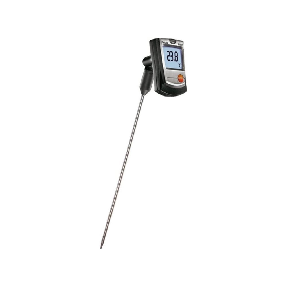 Проникающий термометр testo 905-T1 имеет широкий диапазон измерений от -50 до +350°C. Его даже можно использовать для краткосрочных измерений (1-2 минуты) температуры до +500°C. Он оснащен встроенным сенсором - термопарой типа K. Кроме того, проникающий термометр отличается высоким быстродействием. Термопара очень быстро реагирует на температуру, особенно в воде или других жидкостях. Поэтому этот проникающий термометр идеально подходит для измерений в жидких субстанциях в лабораториях, в химической и фармацевтической отраслях. Однако вы можете не только погружать длинный заостренный наконечник зонда в жидкости и мягкие или порошкообразные вещества, но и вставлять его в вентиляционные воздуховоды, чтобы измерять в них температуру воздуха. Этот проникающий термометр отличается более высокой точностью, чем другие термометры данного ценового диапазона.