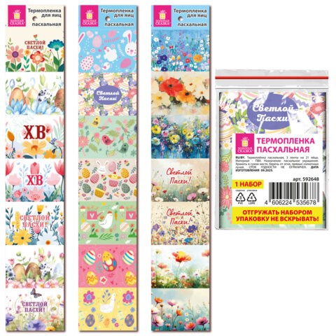 Термопленка пасхальная НАБОР 3 ЛЕНТЫ х 7 яиц каждая "Светлый праздник", ЗОЛОТАЯ СКАЗКА, 592648