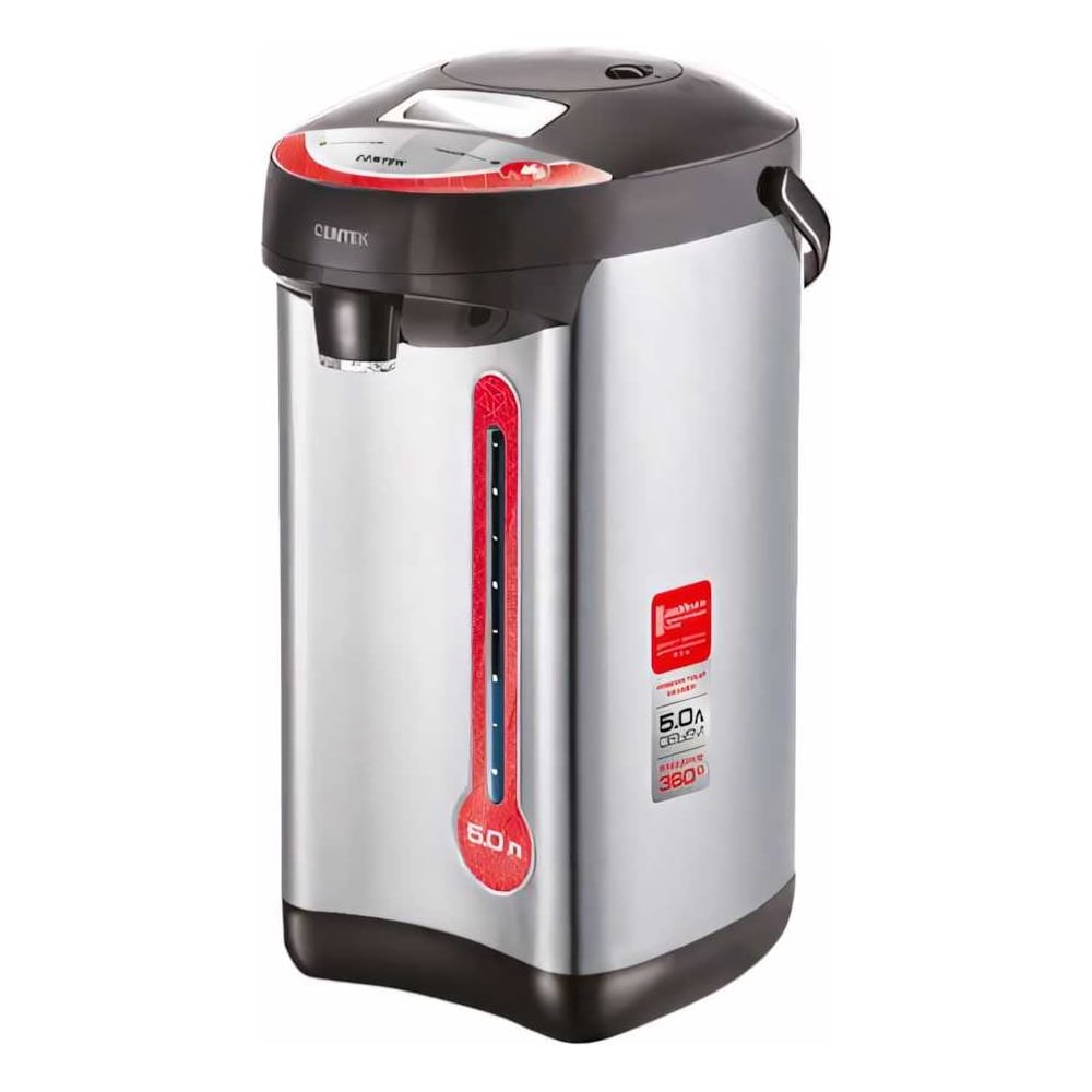 Термопот Centek 5л, 750Вт, 3 способа подачи воды, корпус из нержавеющей стали CT-0082 Black подойдет как для дачи, так и для дома. Нержавеющая стальная колба позволяет пользоваться изделием долгое время. Функция защиты от включения без воды увеличивает срок службы термопота. Для удобной переноски имеется специальная ручка. Благодаря функцией поддержания температуры у вас под рукой будет всегда горячая вода. Дополнительные характеристики Металлический корпус Защита от перегрева Безопасная система блокировки Световые индикаторы Вращающаяся подставка Съемная крышка Съемный шнур