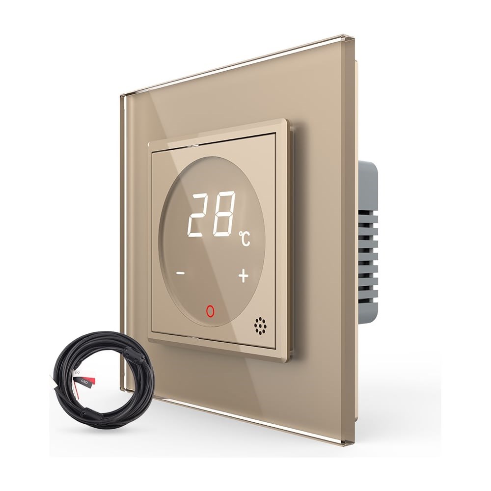 Терморегулятор пола Livolo предназначен для контроля и поддержания заданного значения температуры нагрева воздуха в помещении и ее регулировки, при изменении внешних условий. Cенсорный терморегулятор с лаконичным и современным дизайном. Терморегулятор имеет встроенный датчик температуры воздуха. К механизму терморегулятора можно подключить внешний датчик температуры пола модель VL-XQ001 (в комплекте). При подключении внешнего датчика пола, встроенный датчик температуры воздуха отключается. При использовании терморегулятора с датчиком воздуха, его необходимо подключить к твердотельному реле модель VL-XQ002 (в комплект не входит), а затем подключить к теплому полу, чтобы обеспечить точность определения температуры. При использовании с внешним датчиком температуры терморегулятор подключается к теплому полу напрямую. Внешний датчик цифровой, чип 18B20, экранированный сигнальный кабель 5метров, 3 контакта: красный VDD, белый DQ, черный GND. На датчике установлены ферриторвые фильтры, которые убирают высокочастотные помехи. При невозможности установить датчик с фильтрами можно оставить фильтр только возле подключения к самому терморегулятору. С одним фильтром могут возникать небольшие отклонения в показаниях температуры в 1-2 градуса, но это не критично. Двухконтактные датчики к данной модели не подключаются.