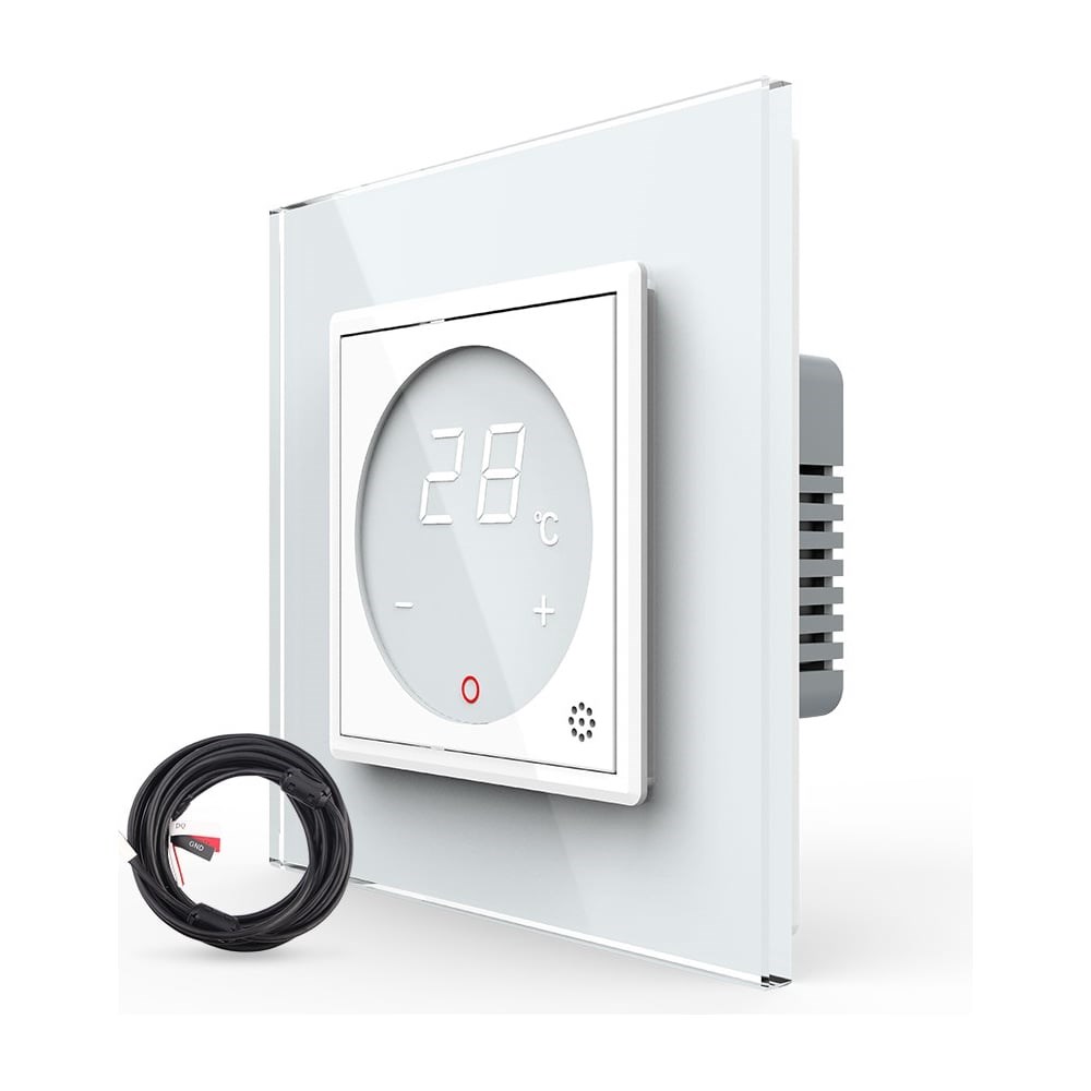 Терморегулятор пола Livolo предназначен для контроля и поддержания заданного значения температуры нагрева воздуха в помещении и ее регулировки, при изменении внешних условий. Cенсорный терморегулятор с лаконичным и современным дизайном. Терморегулятор имеет встроенный датчик температуры воздуха. К механизму терморегулятора можно подключить внешний датчик температуры пола модель VL-XQ001 (в комплекте). При подключении внешнего датчика пола, встроенный датчик температуры воздуха отключается. При использовании терморегулятора с датчиком воздуха, его необходимо подключить к твердотельному реле модель VL-XQ002 (в комплект не входит), а затем подключить к теплому полу, чтобы обеспечить точность определения температуры. При использовании с внешним датчиком температуры терморегулятор подключается к теплому полу напрямую. Внешний датчик цифровой, чип 18B20, экранированный сигнальный кабель 5 метров, 3 контакта: красный VDD, белый DQ, черный GND. На датчике установлены ферриторвые фильтры, которые убирают высокочастотные помехи. При невозможности установить датчик с фильтрами можно оставить фильтр только возле подключения к самому терморегулятору. С одним фильтром могут возникать небольшие отклонения в показаниях температуры в 1-2 градуса, но это не критично. Двухконтактные датчики к данной модели не подключаются.