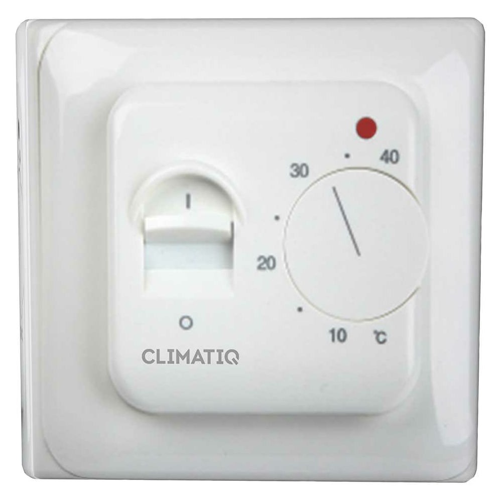 Терморегулятор для теплого пола IQWATT CLIMATIQ BT с ручным управлением, белый 20616 предназначен для автоматического поддержания установленной пользователем температуры до + 40°С в помещениях оборудованных системами электрического обогрева «теплый пол» с использованием выносного датчика температуры. Рекомендован для установки с любыми системами электрического обогрева (резистивные нагревательные кабели и маты, инфракрасные пленочные полы ит. д.) мощностью не более 3520Вт / ~220В или 3600Вт / ~230В (16А).