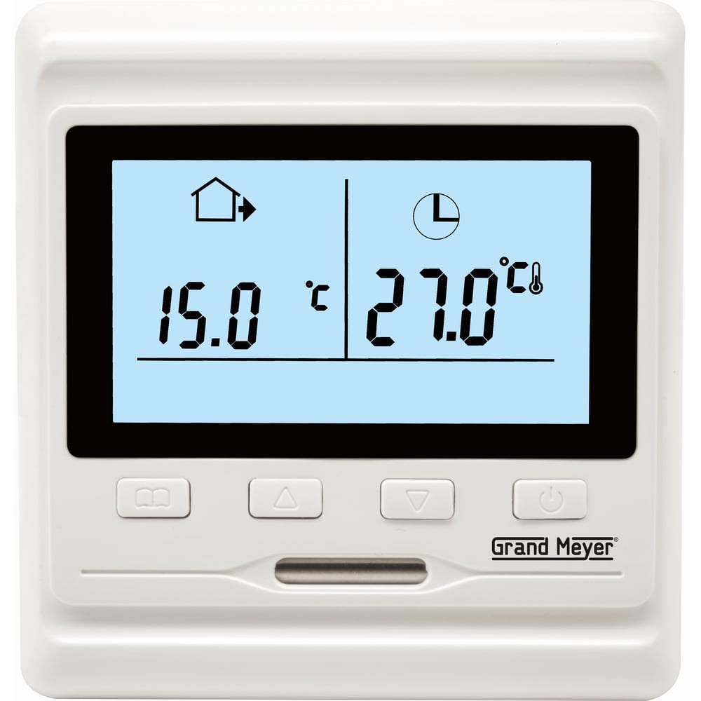 Кнопочный программируемый терморегулятор HW500 белый для управления теплым полом. Возможность программируемого и ручного управления. Возможность установки недельного периода 5+2/6+1/7 дней. Память настроек при отключении питания. Встроенный воздушный датчик и выносной NTC датчик длиной 3 м. Имеет 2 цветовых решения корпуса: белый (HW500) и черный матовый (HW800). Терморегулятор управляет работой теплого пола по показаниям датчика температуры пола (входит в комплект поставки) или по показаниям датчика температуры окружающего воздуха (встроен в регулятор), или в комбинации обоих датчиков. Регулятор предназначен для скрытого (утопленного) монтажа в гнезде монтажной коробки. Напряжение питания: 230B (±10%), 50Гц Коммутируемый ток: 20 А Мощность, потребляемая регулятором при выключенной нагрузке, не более: 2 Вт Выходное реле: Замыкающее Температура эксплуатации: от -5⁰С до +50⁰С Датчики температуры: Встроенный и выносной Пределы регулирования температуры: от +5⁰С до +95⁰С (заводские от +5⁰С до +35⁰С) Гистерезис (настраиваемый): от 0,5⁰С до 10⁰С Сопротивление выносного датчика: 10кОм при +25⁰С Длина соединительного кабеля выносного датчика: 3м Функция защиты от замерзания: Есть Режим программирования: 5+2/6+1/7 дней Материал корпуса: Самозатухающий ПВХ Степень защиты: IP20 Габаритные размеры в сборе: 90 (В) x 86 (Ш) x 56 (Г) мм Цвет корпуса: Белый Масса: 142г Сертифицирован: СЕ, ЕАС