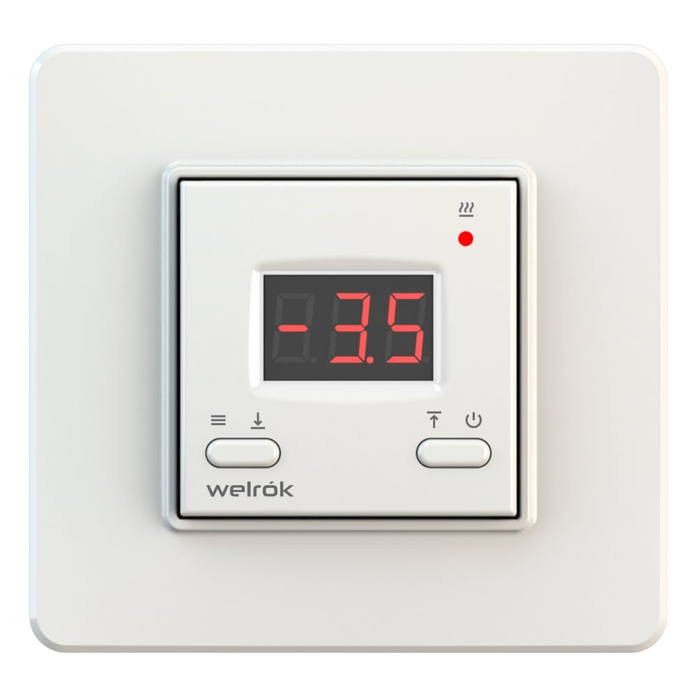 Специально для снеготаяния. Терморегулятор Welrok kt 4660251140151 для систем антиобледенения и снеготаяния, использует выводной датчик температуры воздуха. Комфорт эксплуатации. Настройка температуры и навигация по меню осуществляется двумя кнопками и отображается на цифровом экране. Яркость экрана автоматически снижается до 30 % в режиме ожидания для комфортного использования в ночное время и экономии электроэнергии. Может работать с аналоговым (R10) или цифровым (DS18B20) датчиками. Устанавливается в стандартный подрозетник диаметром 60 мм. Надежность и безопасность. Чтобы никто случайно не изменил параметры работы терморегулятора, вы можете заблокировать кнопки. Кроме того, устройство имеет защиту от перегрева: если температура внутри корпуса достигнет 85 °C, терморегулятор отключит обогрев и сообщит вам об этом. Когда температура снизится до 80 °C, терморегулятор возобновит работу.