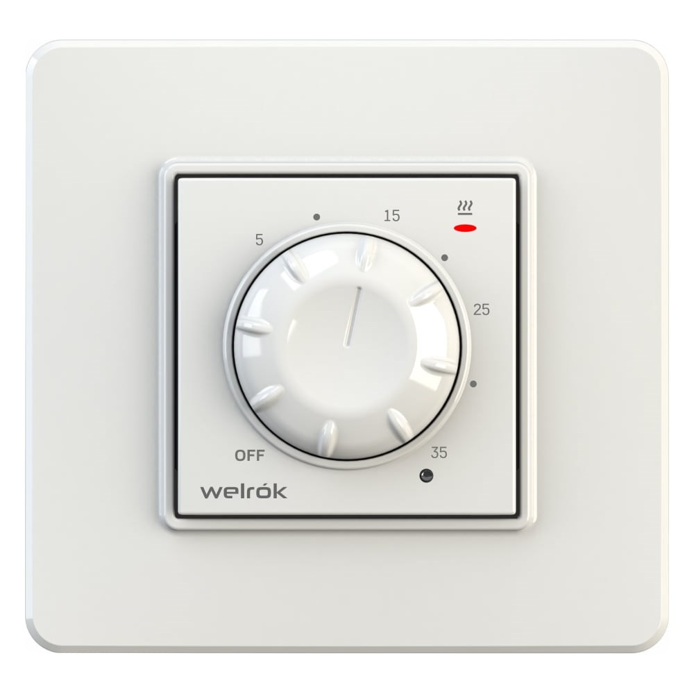 Широкое применение Welrok rol - механический терморегулятор для систем электрического отопления, таких как инфракрасные панельные обогреватели и конвекторы до 2 кВт. Имеет встроенный термодатчик. Welrok rol поддерживает постоянную заданную температуру в диапазоне от 0 до 35 градусов Цельсия. Измерение температуры обеспечивает встроенный датчик воздуха. Точность поддержания температуры достигается за счет установки мощности подключенной нагрузки. Комфорт эксплуатации Управлять температурой с помощью этого терморегулятора очень просто: достаточно просто повернуть ручку регулировки по часовой стрелке. С помощью ручки также выставляется мощность нагрузки. Устанавливается в стандартный подрозетник диаметром 60 мм. Надежность и безопасность Терморегулятор Welrok rol оснащен индикацией статуса работы с помощью зеленого и красного светодиодов. Если температура внутри корпуса превысит 95°C, терморегулятор автоматически выключится. При снижении температуры до 85°C терморегулятор включится автоматически.