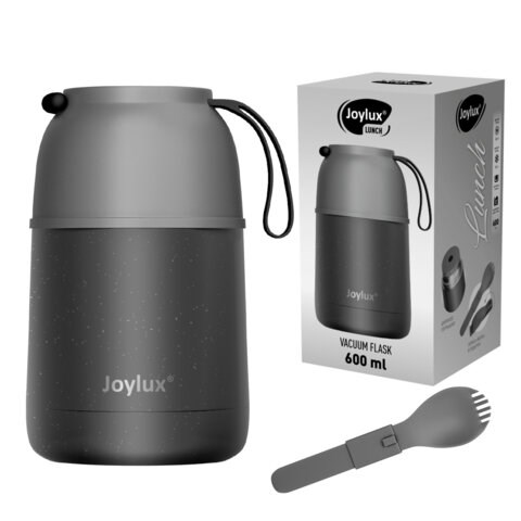 Термос JOYLUX — это универсальное решение для тех, кто ценит удобство и функциональность. С ним Вы сможете брать с собой первые и вторые блюда, напитки или даже мороженое: широкое горлышко позволяет есть прямо из термоса, а вместительная крышка превращается в удобную тарелку. В комплекте также есть раскладная пластиковая вилка?ложка, а ремешок на крышке упрощает переноску. Особая система с винтовой пробкой и кнопкой для стравливания давления делает использование термоса максимально безопасным — Вы легко откроете его, не рискуя обжечься.