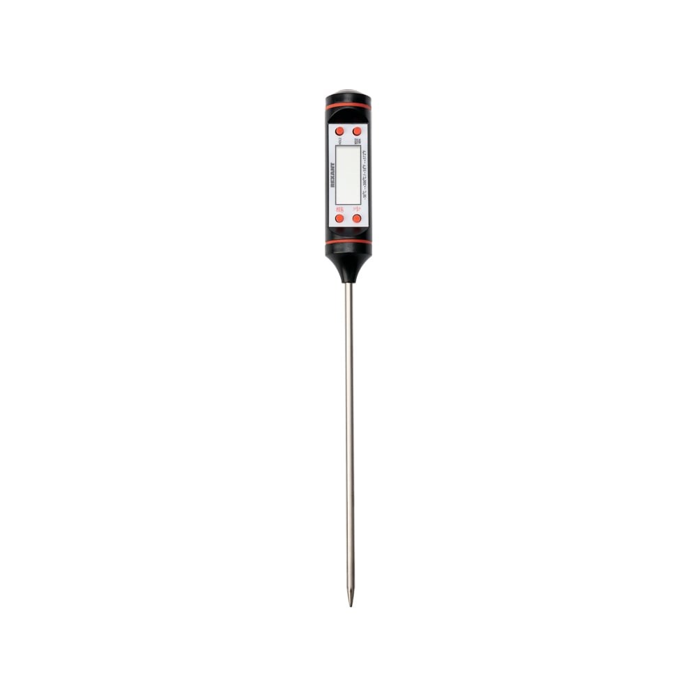 Цифровой термометр предназначен для измерения температуры продуктов и жидкостей. Применяется на фабриках, в ресторанах, лабораториях и в домашнем хозяйстве. Устройство отличается низким потреблением энергии, высокой стабильностью работы, высокой точностью, компактностью и простотой в использовании.Термощуп оптимально подходит для измерения температуры напитков, молока, кофе и других продуктов. Диапазон измеряемых температур составляет от -50 до +300 °C. Размер – 245х22 мм.
