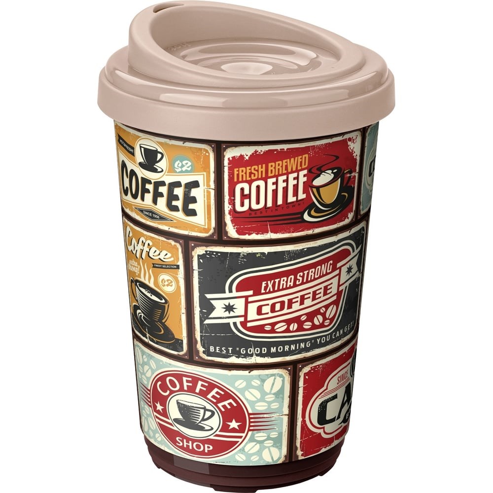 Термостакан с декором Phibo РЕТРО 400 мл, темно-бежевый 43323333253 идеален как для активного образа жизни, так и для созерцательного наслаждения чаем или кофе. Воздушная прослойка между стенками стакана сохраняет температуру напитка, а также не позволяет внешней стенке стакана сильно нагреваться. Крышка с эргономичным носиком плотно закручивается на корпусе и не протекает. Стильный декор вплавлен в корпус стакана и не сотрётся с течением времени. Термостакан идеально подойдёт в качестве экологичной замены одноразовым неразлагаемым стаканчикам для кофе. Изготавливается из безопасного полипропилена, и не содержит бисфенол А, фталаты, меламин и другие вредные вещества (в отличие от бамбуковых или одноразовых стаканов).
