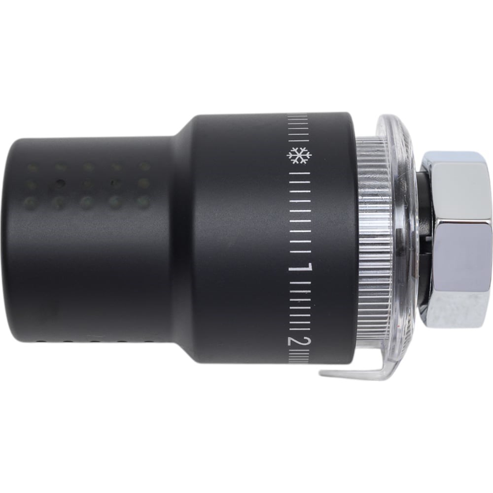 Термостатическая головка SR Rubinetterie "ARIA" цвет черный матовый N094-0000V00S устанавливается на термостатический вентиль, позволяет постоянно поддерживать температуру в помещении на комфортном уровне, а также экономит расход энергии. Дополнительные характеристики: Шкала регулировки - 5. Диапазон регулировки температуры: 7 - 28°C. Режим защиты от замерзания:7°C. Максимальная температура окружающей среды: 50°C. Минимальная устанавливаемая температура: 7°C.