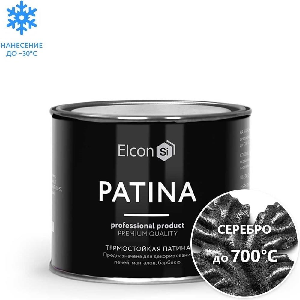 Термостойкая патина Elcon Patina серебро 0,2 кг 00-00461417 предназначена для художественно-декоративной отделки под благородную старину металлических кованых, штампованных изделий, в том числе литья из чугуна, цветных металлов, стали, железа различных форм и размеров, подвергающихся нагреванию до +700 °С. Патина широко используется для декорирования печей, мангалов, барбекю. Указания к применению:Перед применением тщательно перемешать, при необходимости разбавить растворителемElcon R до10% отобщей массы.Патина наносится на сухую поверхность с помощью плоской жесткой кистиНа бумагу поместить небольшое количество патины, смоченной в растворителе кистью растереть патинуПройтись кистью по выпуклым местам металлического изделияЕсли необходим более насыщенный эффект, то растирка на бумаге должна быть менее интенсивнойРаботы рекомендуется проводить участками по 0,7-1,5 м2Широкие редкие мазки образуют более «спокойную» фактуру, частые и мелки – более декоративную и эффектнуюВремя окончательной сушки при температуре (20±2) °С— 24часа.Срок окончательной полимеризации покрытия при температуре (20±2)°С— 72часа.Области применения:ПечиМангалыКотлыРадиаторы
