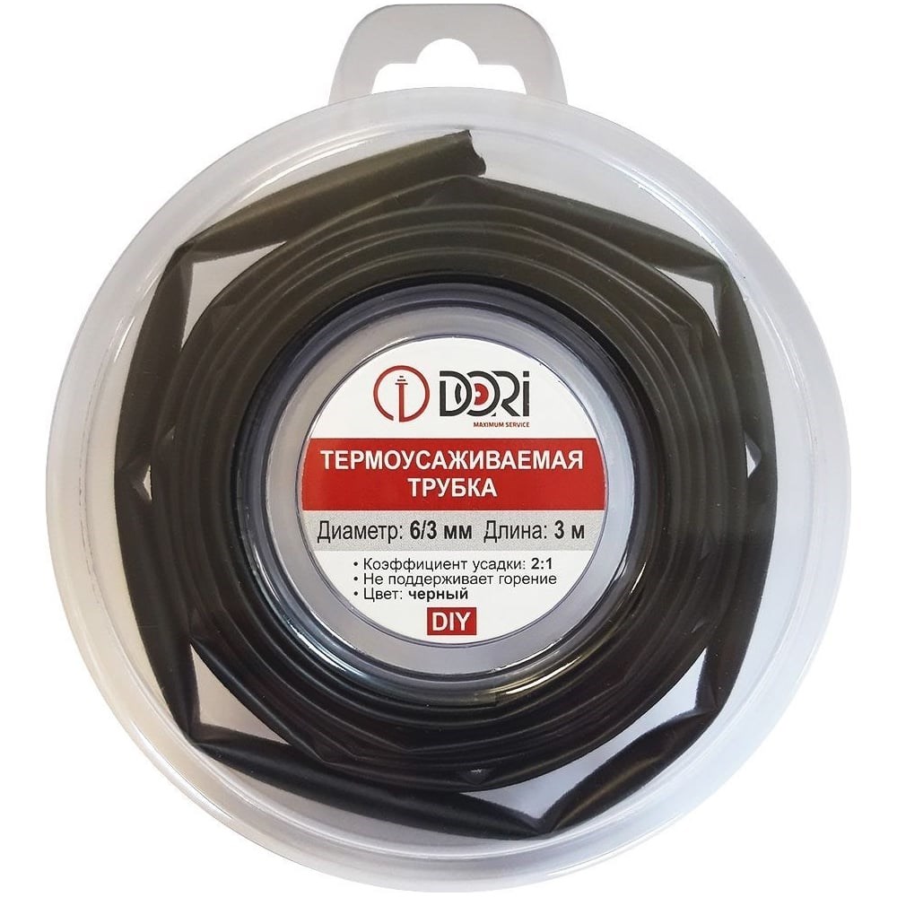 Термоусаживаемая трубка DORI (3м, 6/3, черная) 48770