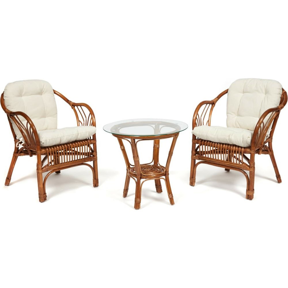 Террасный комплект Tetchair NEW BOGOTA 2 кресла, стол, с подушками, ротанг 13341 подходит для отдыха в саду или на дачном участке. Комплект является эксклюзивным и неповторимым, так как его делают вручную методом выгибания и плетения. Изготовлен из гибкого и прочного ротанга, который может выдержать огромный вес, являясь при этом фантастически лёгким.