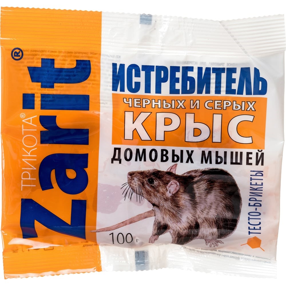 Тесто-сырные брикеты, защита от грызунов Zarit Трикота 100 г 25177 используются против крыс и мышей. Высокоэффективное средство борьбы с мышевидными грызунами - достаточно однократного поедания. Гибель грызунов происходит через 3-6 суток после поедания брикетов. Дополнительные характеристики: Расход: 1 брикет на 1 мышь и 2-3 брикета на 1 крысу; Количество в упаковке: 50 шт.