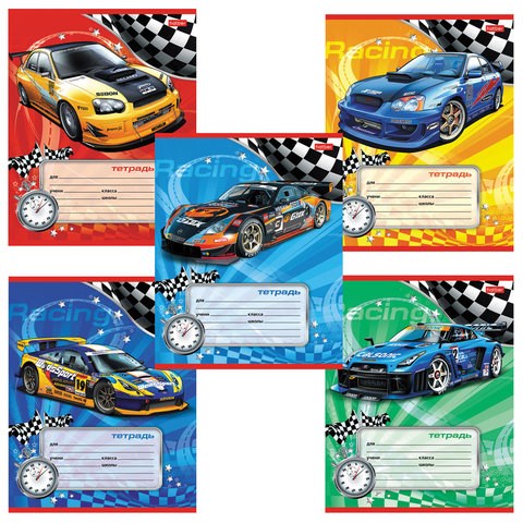 Тетрадь 12 л., HATBER, косая линия, обложка картон, "Спортивные авто" (микс в спайке), 013954, 12Т5В6