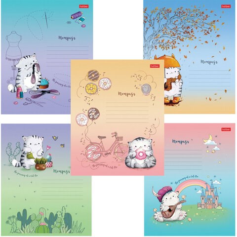 Тетрадь 12 л., HATBER, линия, обложка картон, "Приключения кота Пирожка" (микс в спайке), 067659, 12Т5В2