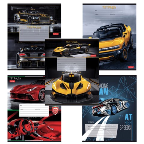 Тетрадь 12 л., HATBER клетка, обложка картон, "В мире авто" (микс в спайке), 080067, 12Т5В1