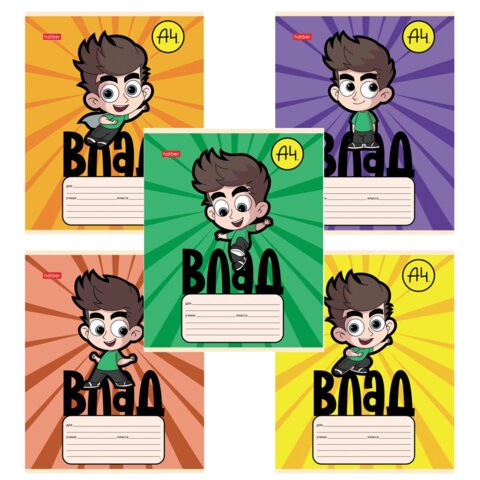 Тетрадь 12 л., HATBER косая линия, обложка картон, "Влад А4" (микс в спайке), 082391, 12Т5В6