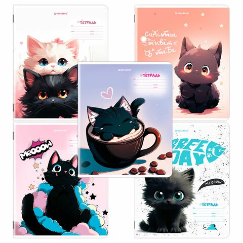 Тетрадь 18 л. BRAUBERG клетка, обложка картон, КОТИКИ, 107300