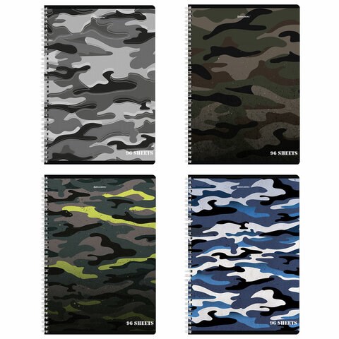 Тетрадь А4, 96 л., BRAUBERG, гребень, клетка, обложка картон, "Military", 404057