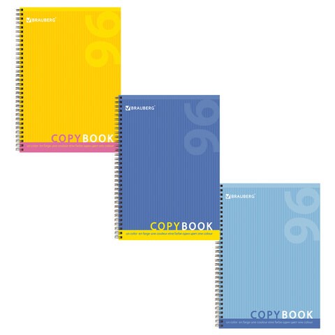 Тетрадь А4, 96 листов, BRAUBERG, гребень, клетка, обложка картон, ОДИН ЦВЕТ, 401882