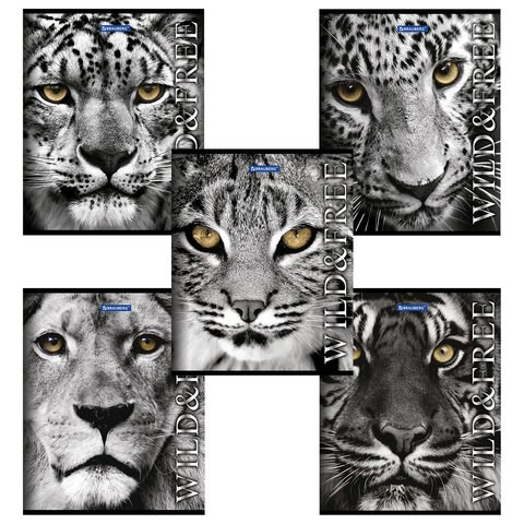 Тетрадь А5, 48 л., BRAUBERG скоба, клетка, обложка картон, ДИКИЕ И СВОБОДНЫЕ, 401810