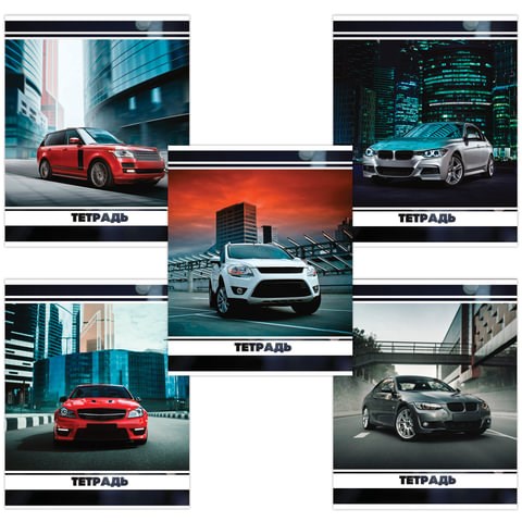 Тетрадь А5, 48 л., BRAUBERG, скоба, клетка, обложка картон, МАШИНЫ, 403038