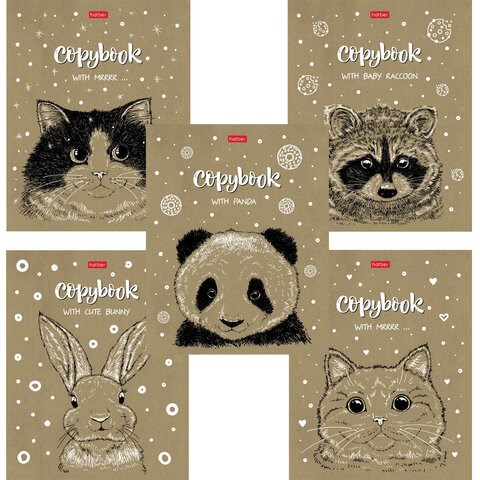 Тетрадь А5, 48 л., HATBER, скоба, клетка, обложка крафт-картон, "Милые зверьки" (микс в спайке), 066339, 48Т5В1