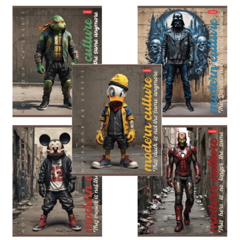 Тетрадь А5 48 л., HATBER скоба, клетка, обложка картон, "Те самые герои" (микс в спайке), 088617, 48Т5В1