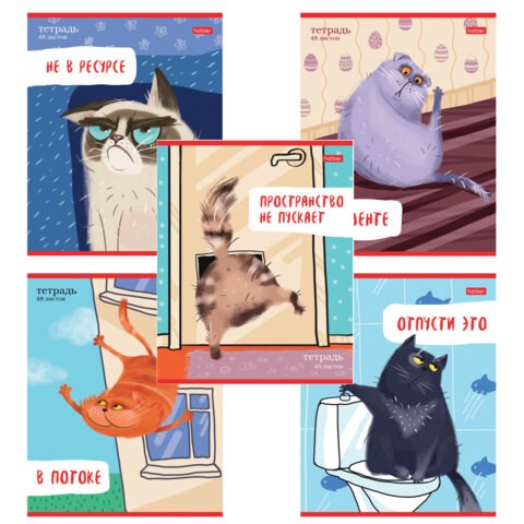 Тетрадь А5 48 л., HATBER скоба, линия, обложка картон, "Кот-обормот" (микс в спайке), 080206, 48Т5В2